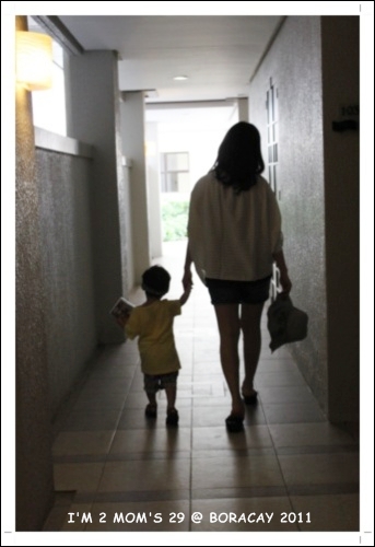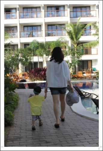 我跟小不點在飯店長廊的背影...