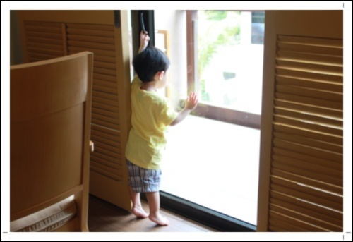 滑下床 "咚咚咚" 衝上落地窗嚷著 "我要出去外面跑一跑"