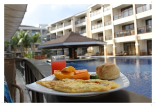 在泳池邊用餐好舒服喔...