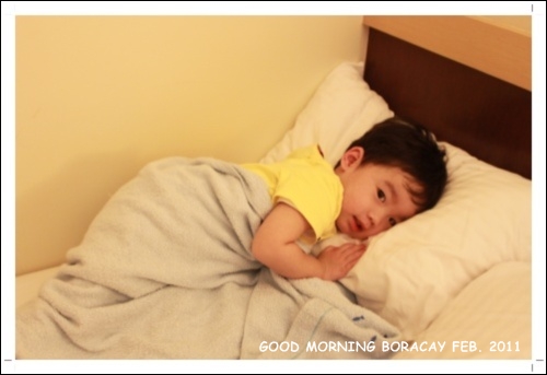 小乖躺在床上叫著 "我起床了我起床了" 卻還在賴床~