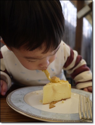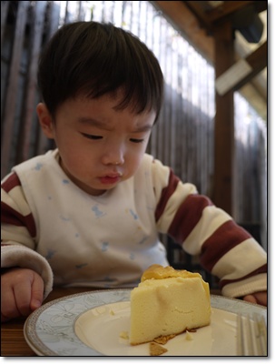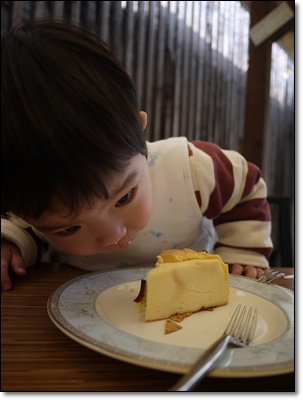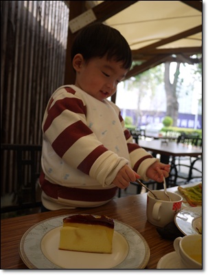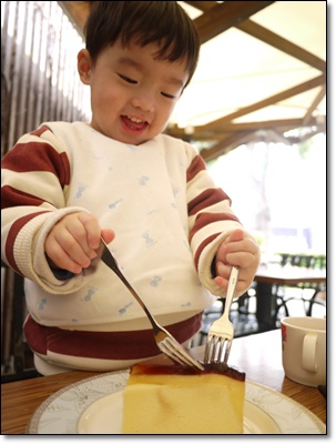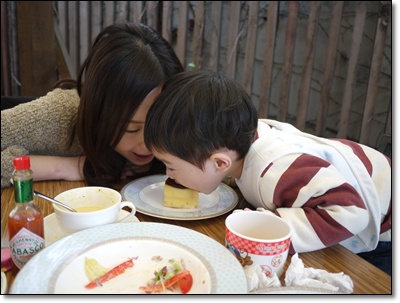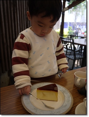 飯後小乖說要吃 "麵包" .. 我加點了一個 "布丁輕乳酪蛋糕" 給小乖吃...