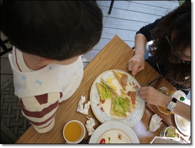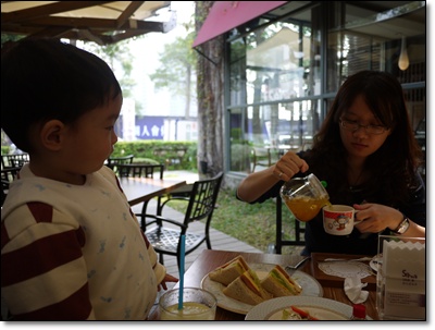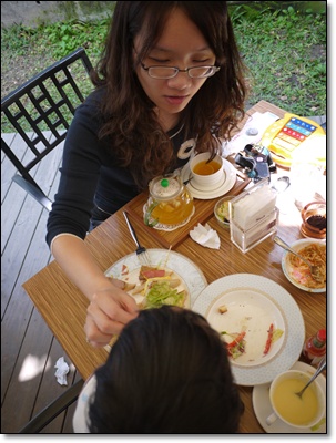 我們第一次來喔.. 天氣實在涼涼又溫暖.. 我們坐在戶外好舒服~