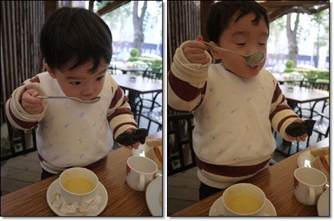 前菜鮭魚超好吃.. 麵包也好吃.. 湯很讚..小乖自己喝光光一大碗..