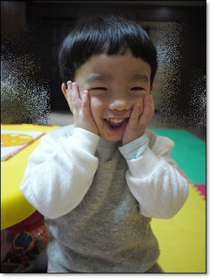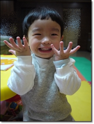 等待時跟兒子對望... 我突然很興奮的 "噹噹 !!