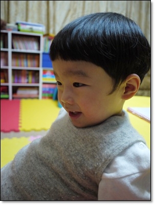 跟小乖說.. "媽媽幫你剪頭髮好不好"