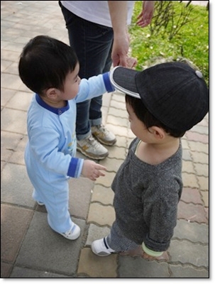 我兒子好可憐.. 常常被(路人)比身高.. 偏偏被比較的都是爸媽都很高的巨人夫妻生的寶寶..