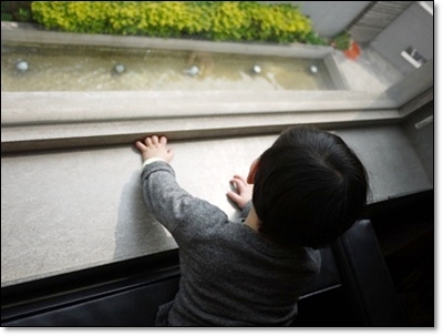 因為臭皮蛋一直吵著要去樓下魚池 "玩水"