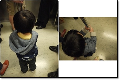 自己站穩穩的扶著欄杆.. 很可愛很安靜的等待..