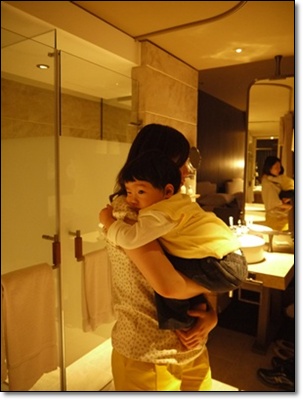 回飯店泡澡前小乖很帥氣的噘這樣在我身上!!