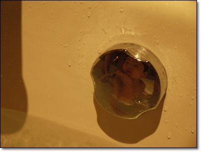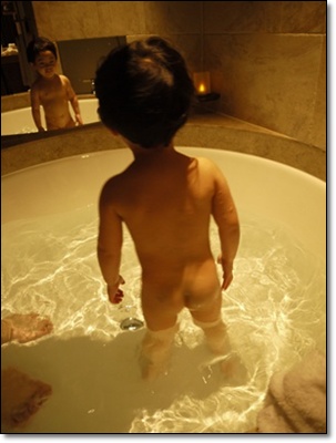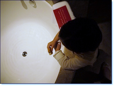 小乖一進去就巴住浴缸說要玩水.. 因為我們家沒浴缸!!! 哈哈..