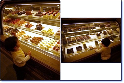 小乖先巡視了蛋糕櫃.. 然後換巧克力櫃..