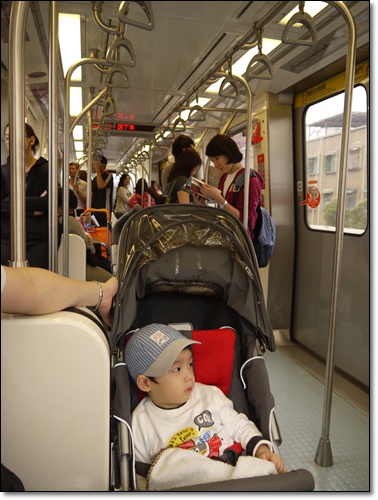 我們坐捷運時.. 小乖盯著看的是一對老老的夫妻..