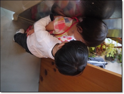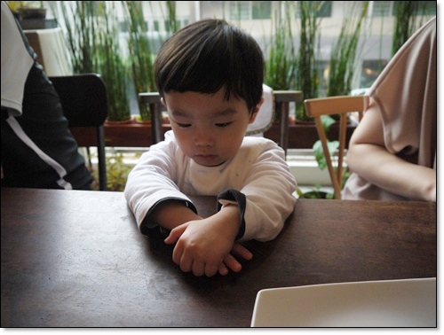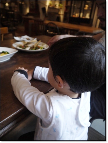 望著食物.. 等待.. (我們真的很像在訓練狗狗耶..