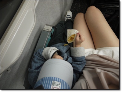 上了高鐵..小乖邊吃雞塊邊問我.."糖糖咧? "
