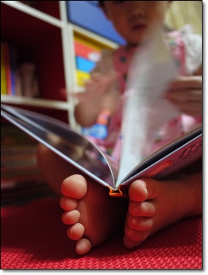 陪讀陪讀..... (這時我已經念完一堆很高的故事書了.. 口渴..