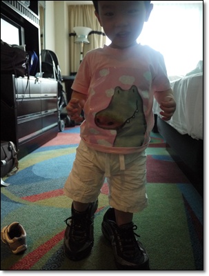 穿了爸比的鞋子.. 因為等下爸比就要回去工作啦...