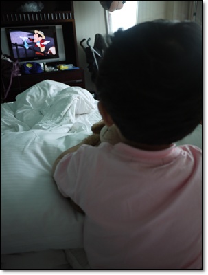 等待我大開佛心給他看卡通的高小乖 ~