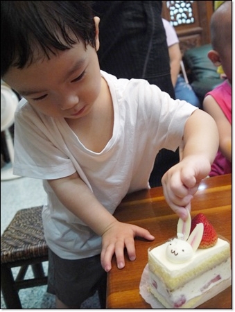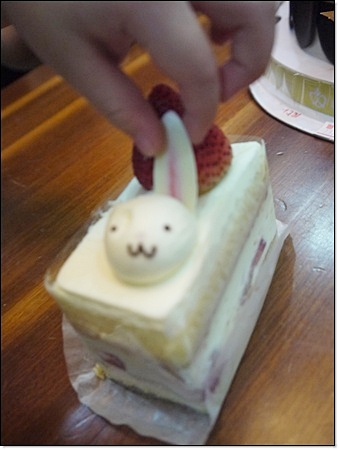 大家默默的切蛋糕時.. 小乖默默的拿起它兔子的耳朵...