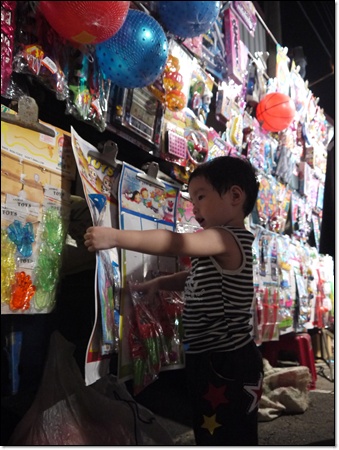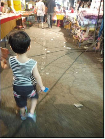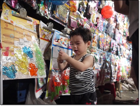 小子也跟著興奮的蹦蹦跳跳...雖然小乖根本不知道什麼是 "夜市"