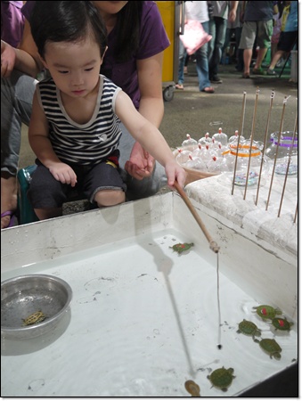 在電話裡我跟小乖爸說我跟小乖去夜市釣烏龜..