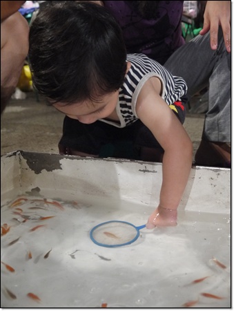 撈魚.. 老闆送我們兩分鐘撈魚...