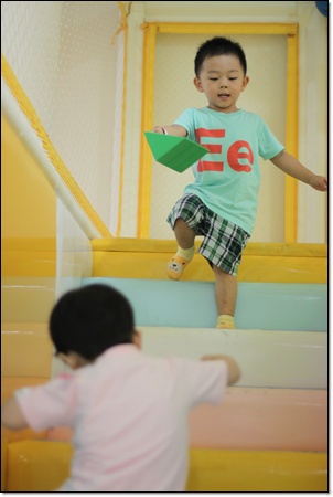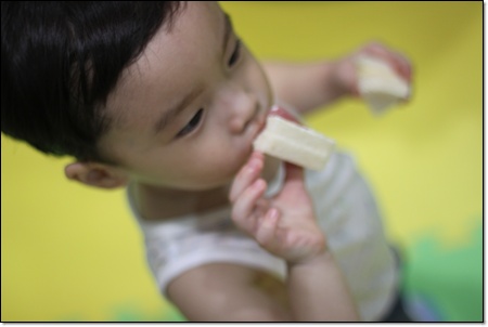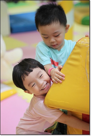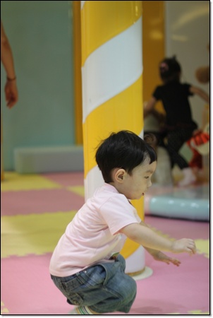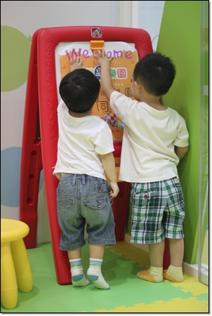 Enson 一看到小乖好興奮阿.. 趕緊拿積木要來跟小乖分享..感情好好喔..