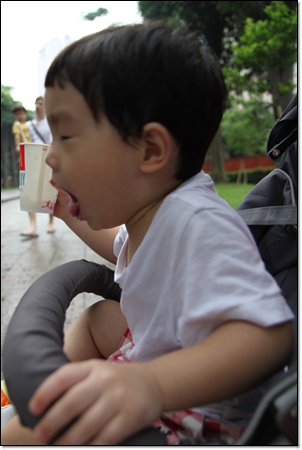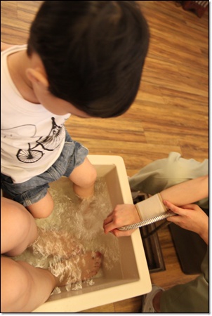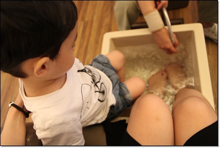 跟我一起泡腳.. 興奮的.. 但很快就要換褲子啦...