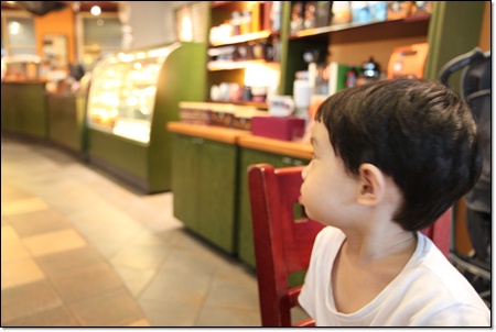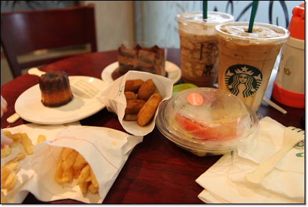 我們一家三口偷渡mos burger 到 starbucks 湊成我們的下午茶..