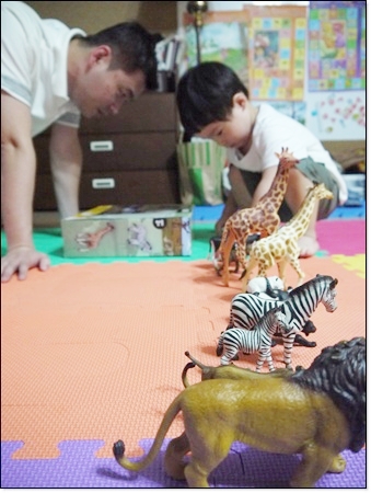 爸比又買了一組八隻動物給小乖.. 小乖猴high阿