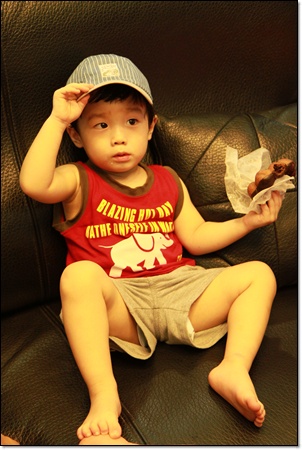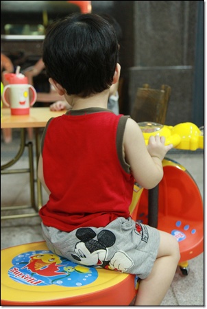 我們母子自High.. 在 Donut shop 的椅子上假裝飆車!