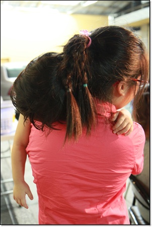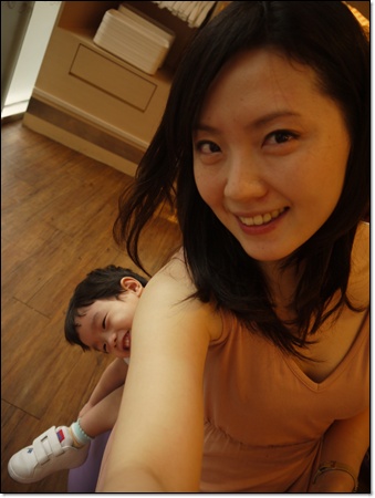最近很愛跑到我後面緊緊摟著我的腰