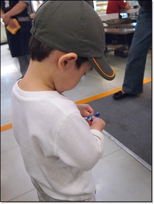 小乖像貓咪一樣.. 繞完了整家店後.. 找了這個他喜歡的角落..坐在那等我!