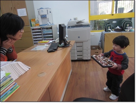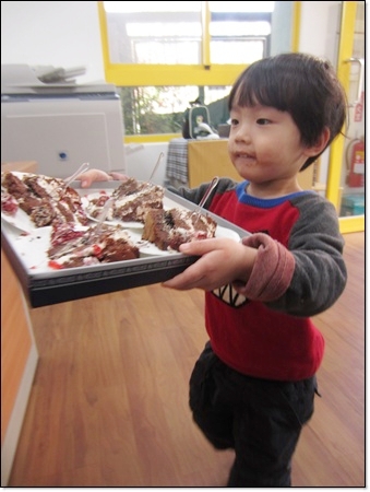 讓小乖跟同學分享慶祝! 感謝老師提供照片!