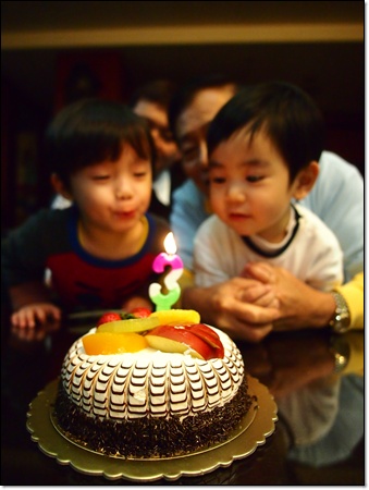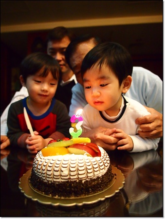 只是..變成兩個娃兒搶了吹蠟燭囉...