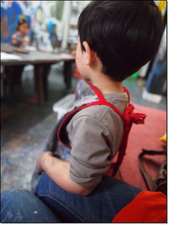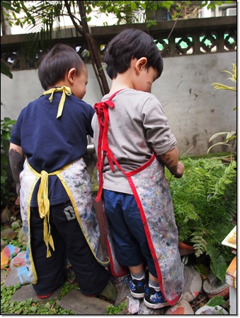 老師幫小乖圍上圍裙.. 開始玩囉!!!