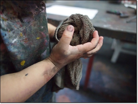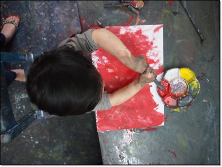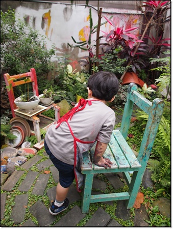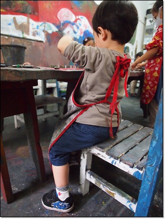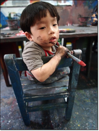 充滿乾掉顏料的桌面, 牆面, 椅子..到處都有... 真放鬆 ~
