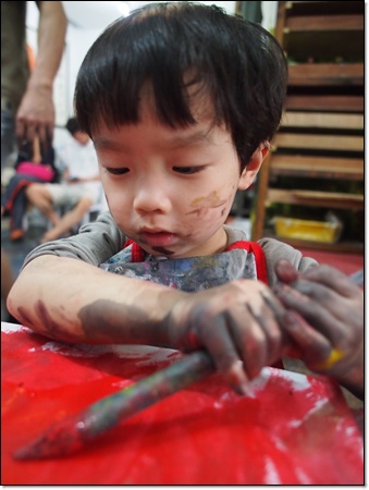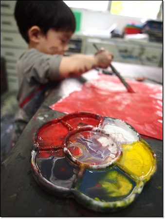 老師說..這年紀的小孩最喜歡混色...遊他們發展很不錯的...