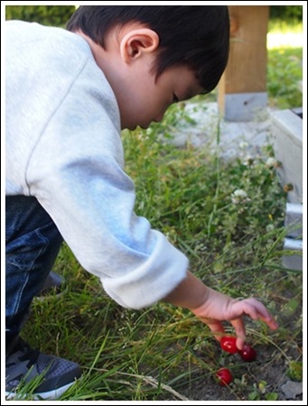 哇~ 我捕捉到櫻桃從小乖手掌掉落在半空中耶...