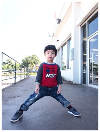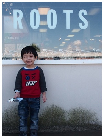 買了好多公子的冬天衣服.. ROOTS 的後帽T..運動鋪棉上衣褲子最舒服了..