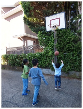 投投籃..肚子餓了, 進門吃晚餐囉!