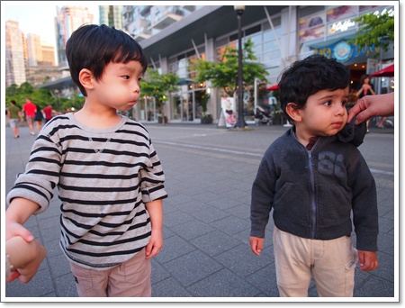 小小男孩想跟小乖玩, 小乖很靦腆不好意思的牽起他的手..(不過我沒拍到就是了)