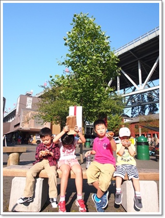 進了 Market 買了甜甜圈, lemonade 做在板凳上曬太陽跟海鷗互看