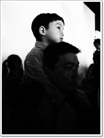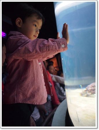 這張是在爸爸的肩膀上看企鵝餵食秀~
