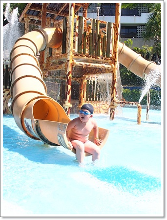 聽說水不夠身摔了屁股會很痛的滑水道~