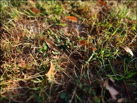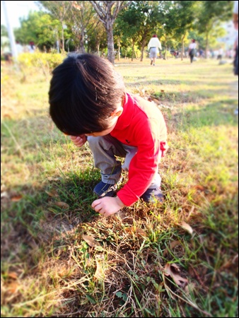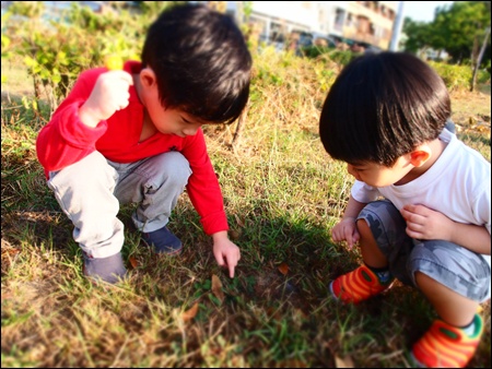 走著走著小乖蹲下來..媽媽有含羞草耶...