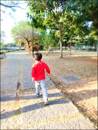 中途大哭因為我們家的小幫手不讓他走太快而哭