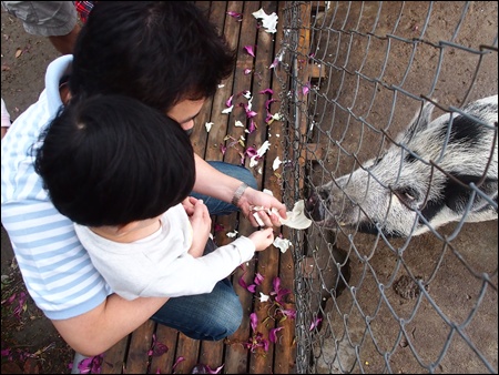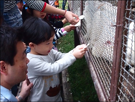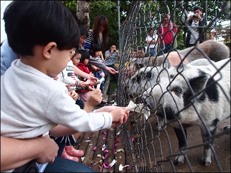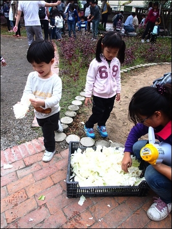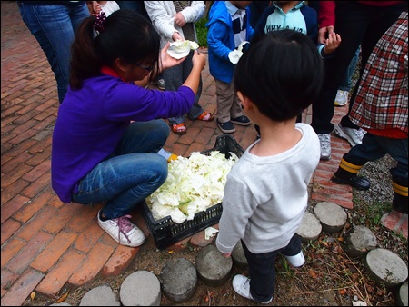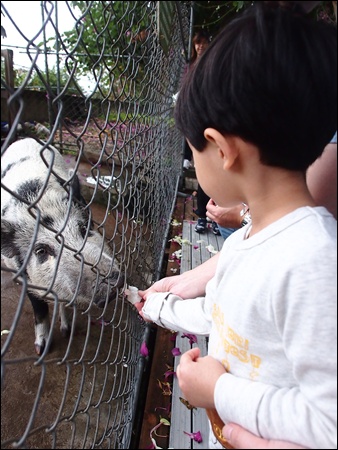 太好玩了, 小豬好餓, 小孩們再去拿高麗菜, 再餵一次