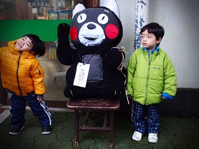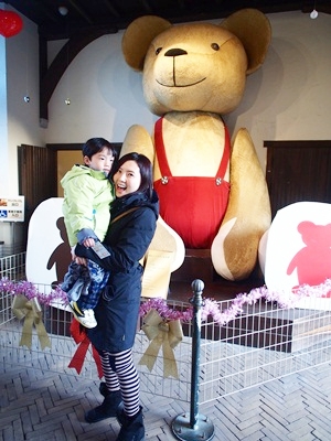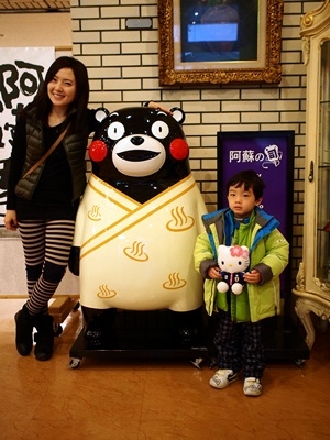一大早我們離開阿蘇那邊的飯店前, 在 lobby 跟這隻討喜的 kuma 合照~