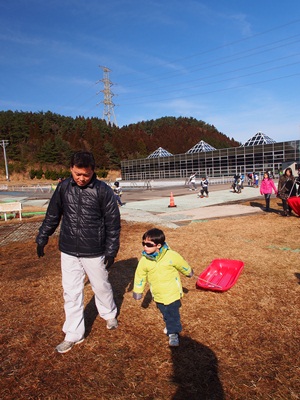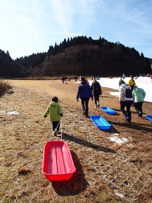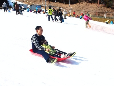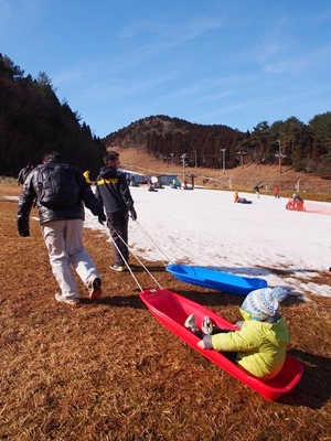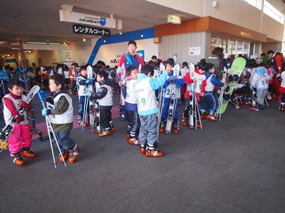 等待領雪盆時看到好多日本小學生好可愛喔...團體滑雪耶!