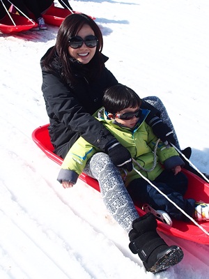 那時拿 snowboard..現在拿雪盆...哈哈哈哈.....